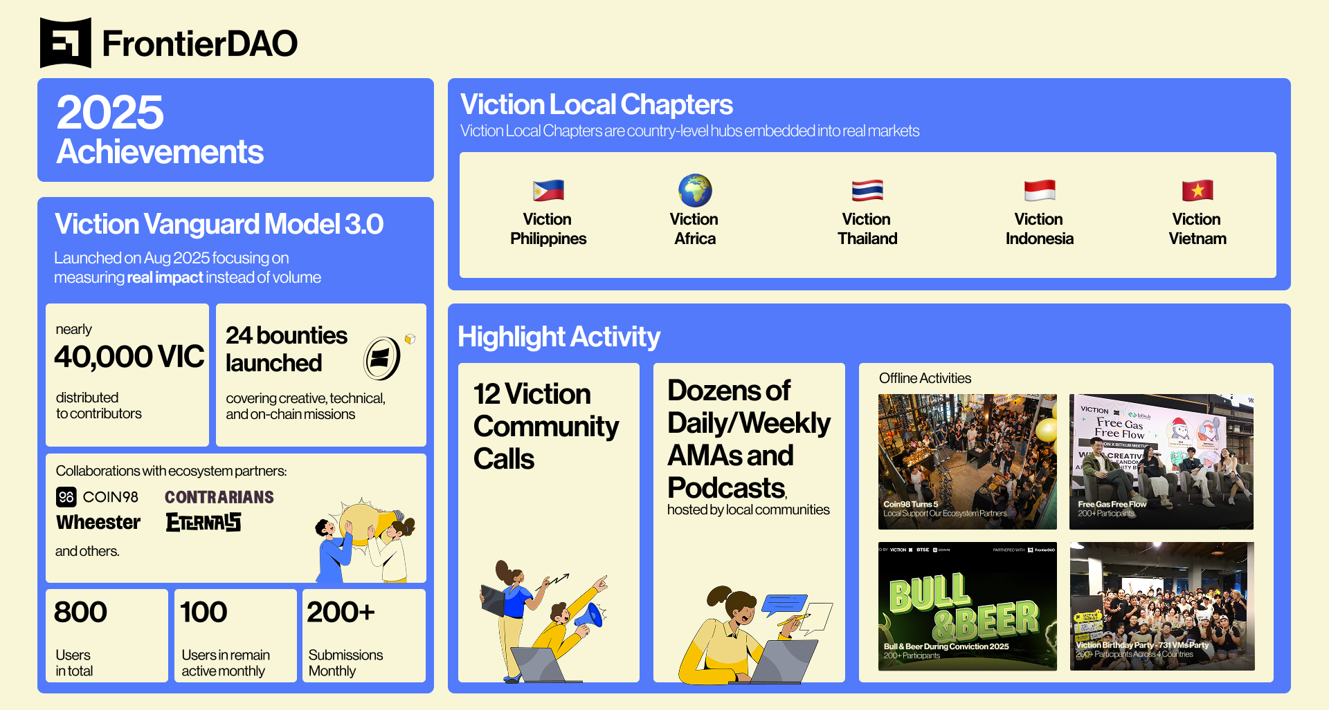 Since Jun 2025, FrontierDAO has officially become Viction's Community Growth Engine. Our community activities supporting the Viction ecosystem have delivered clearer, more impactful results.