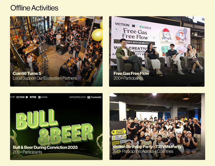 - Alongside online activities, both the core team and local chapters proactively represented Viction at international conferences, Web3 gatherings, and university tours throughout the year. These efforts significantly expanded Viction's global footprint.
